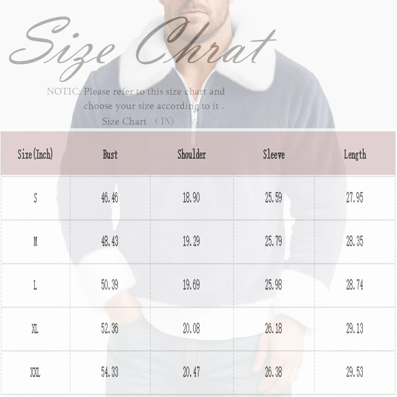 | Size | Bust | Shoulder | Sleeve | Length |